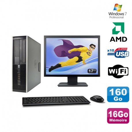 PC HP Compaq 6005 Pro SFF AMD 3GHz - RAM 16 Go DDR3 - Disque dur 160Go SATA - Graveur DVD - Windows 7 professionnel - Clé WIFI USB - Pack Écran 17"/Clavier/Souris (Marques et modèles selon arrivages) - Garantie 6 mois.