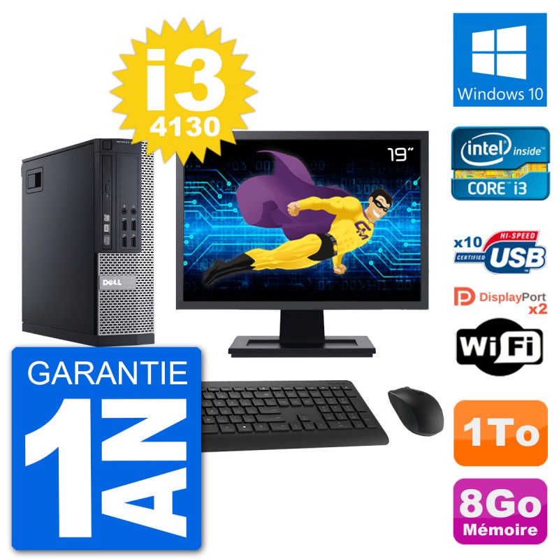 PC Dell 9020 SFF - Intel Core i3-4130 3.4 Ghz (3 Mo) - 8 Go DDR3 - Disque Dur 3,5" 1 To - Graveur DVD - Clef Wifi USB - Windows 10 - Livré avec Ecran 19" + clavier + souris (Marques et modèles variables) - Garantie 1 an.