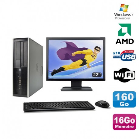 Lot PC HP Compaq 6005 Pro SFF AMD 3GHz 16Go 160Go Graveur WIFI Win 7 Pro + 22"