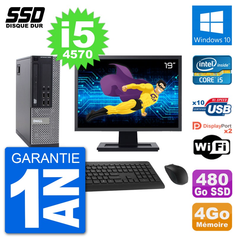 PC Dell 9020 SFF - Intel Core i5-4570 3.2 Ghz (6 Mo) - 4 Go DDR3 - Disque Dur SSD 480 Go - Graveur DVD - Clef Wifi USB - Windows 10 - Livré avec Ecran 19" + clavier + souris (Marques et modèles variables) - Garantie 1 an.