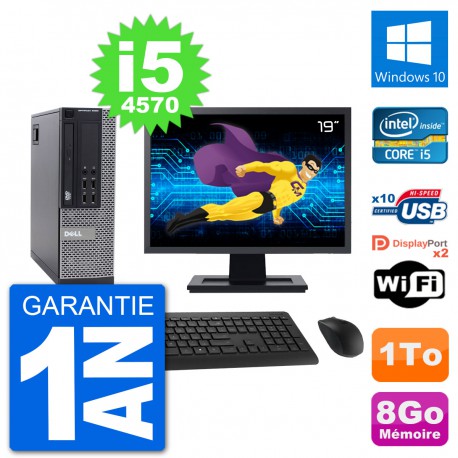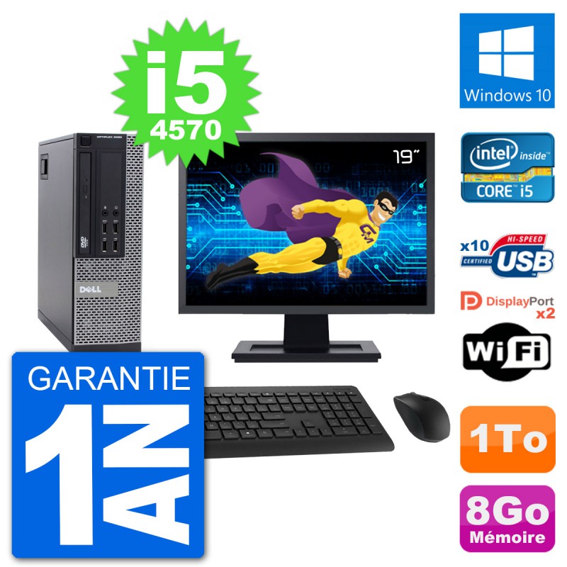 PC Dell 9020 SFF - Intel Core i5-4570 3.2 Ghz (6 Mo) - 8 Go DDR3 - Disque Dur 3,5" 1 To - Graveur DVD - Clef Wifi USB - Windows 10 - Livré avec Ecran 19" + clavier + souris (Marques et modèles variables) - Garantie 1 an.