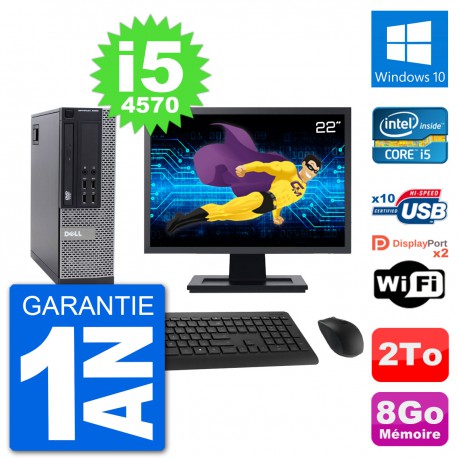 PC Dell 9020 SFF - Intel Core i5-4570 3.2 Ghz (6 Mo) - 8 Go DDR3 - Disque Dur 3,5" 2 To - Graveur DVD - Clef Wifi USB - Windows 10 - Livré avec Ecran 22" + clavier + souris (Marques et modèles variables) - Garantie 1 an.