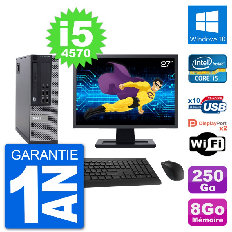 PC Dell 9020 SFF - Intel Core i5-4570 3.2 Ghz (6 Mo) - 8 Go DDR3 - Disque Dur 3,5" 250 Go - Graveur DVD - Clef Wifi USB - Windows 10 - Livré avec Ecran 27" + clavier + souris (Marques et modèles variables) - Garantie 1 an.