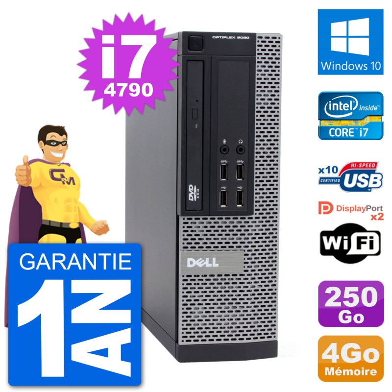 PC Dell 9020 SFF Intel Core i7-4790 RAM 4Go Disque Dur 250Go Windows 10 Wifi