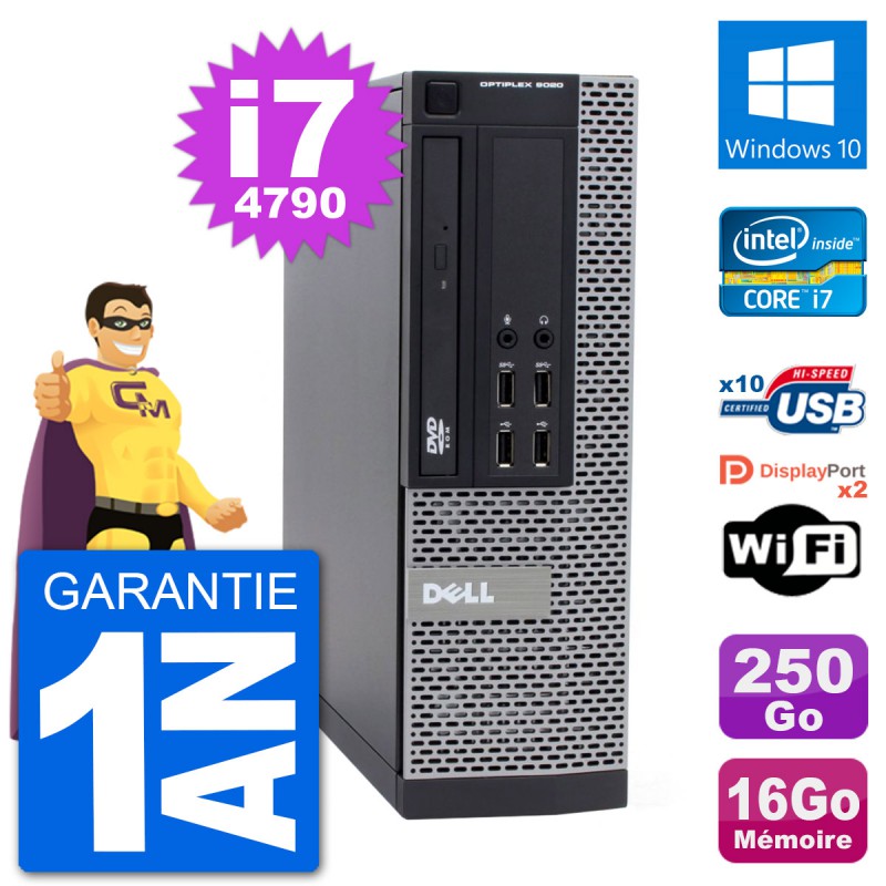 PC Dell 9020 SFF Intel Core i7-4790 RAM 16Go Disque Dur 250Go Windows 10 Wifi