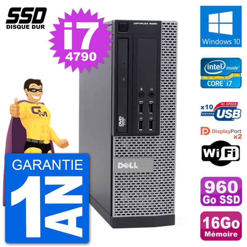 PC Dell OptiPlex 9020 SFF Intel Core i7-4790 RAM 16Go SSD 960Go Windows 10 Wifi