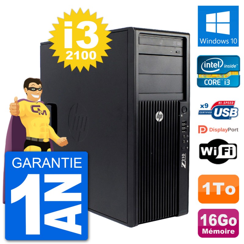 PC Tour HP Z210 Intel Core i3-2100 RAM 16Go Disque Dur 1To Windows 10 Wifi