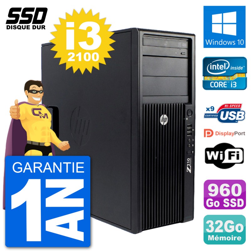 PC Tour HP Z210 Intel Core i3-2100 RAM 32Go SSD 960Go Windows 10 Wifi