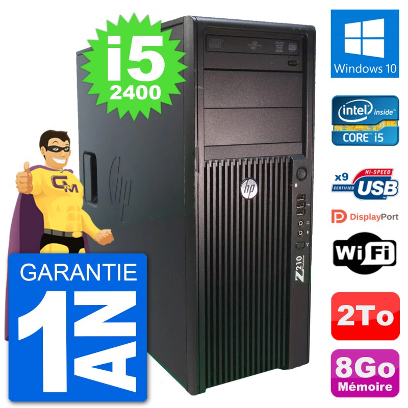 PC Tour HP WorkStation Z210 - Intel Core i5-2400 3.1 Ghz (6 Mo) - 8 Go DDR3 - Disque Dur 3,5" 2 To - Graveur DVD - Clef Wifi USB - Windows 10 - Garantie 1 an.