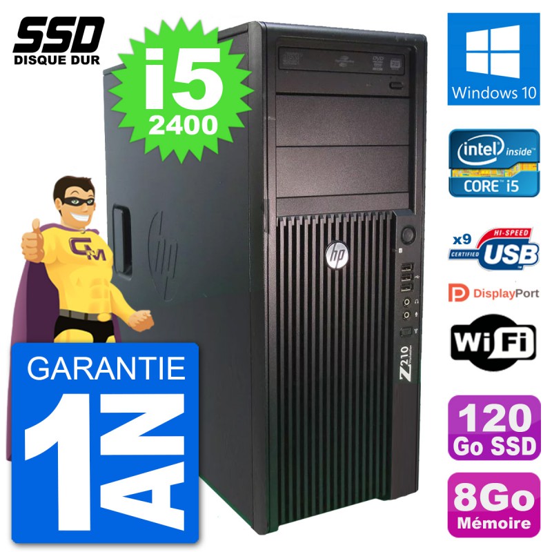 PC Tour HP WorkStation Z210 - Intel Core i5-2400 3.1 Ghz (6 Mo) - 8 Go DDR3 - Disque Dur SSD 120 Go - Graveur DVD - Clef Wifi USB - Windows 10 - Garantie 1 an.