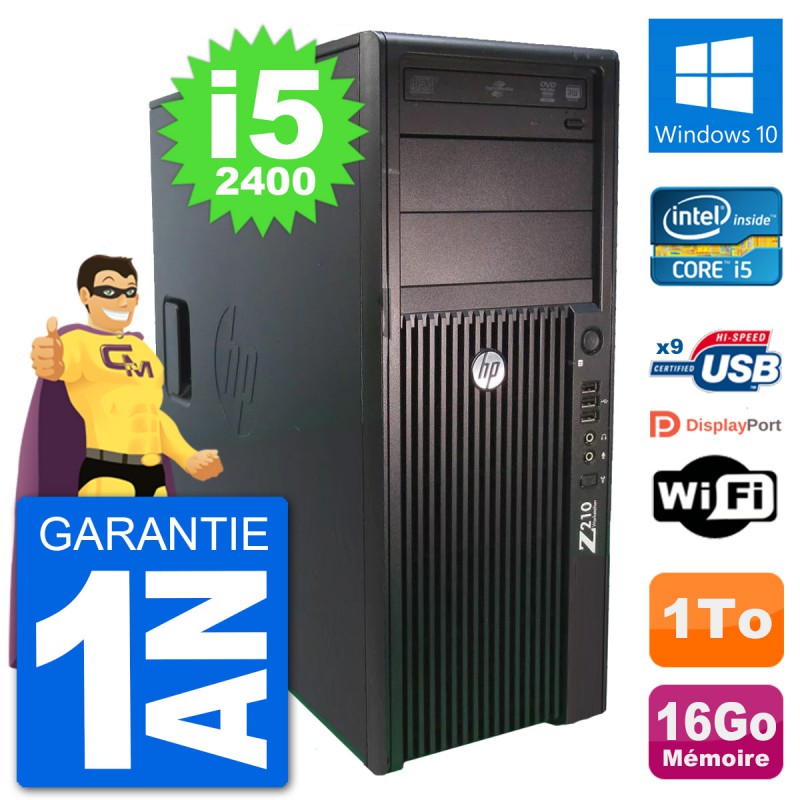 PC Tour HP WorkStation Z210 - Intel Core i5-2400 3.1 Ghz (6 Mo) - 16 Go DDR3 - Disque Dur 3,5" 1 To - Graveur DVD - Clef Wifi USB - Windows 10 - Garantie 1 an.