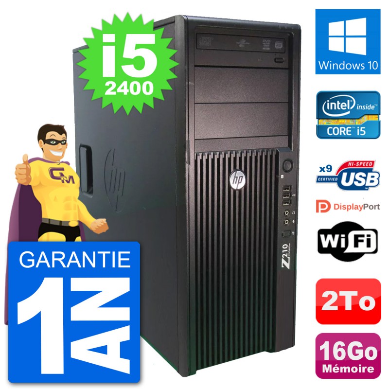 PC Tour HP WorkStation Z210 - Intel Core i5-2400 3.1 Ghz (6 Mo) - 16 Go DDR3 - Disque Dur 3,5" 2 To - Graveur DVD - Clef Wifi USB - Windows 10 - Garantie 1 an.