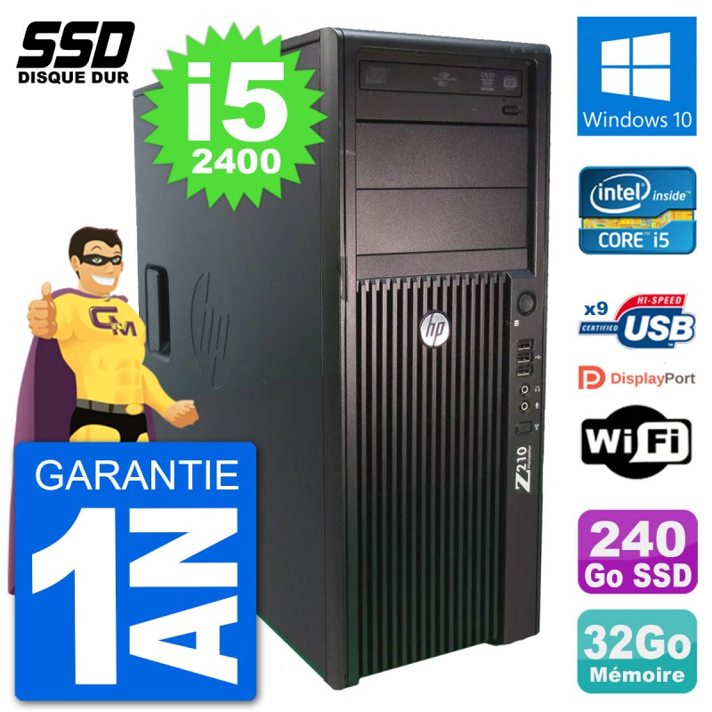 PC Tour HP Z210 Intel Core i5-2400 RAM 32Go SSD 240Go Windows 10 Wifi