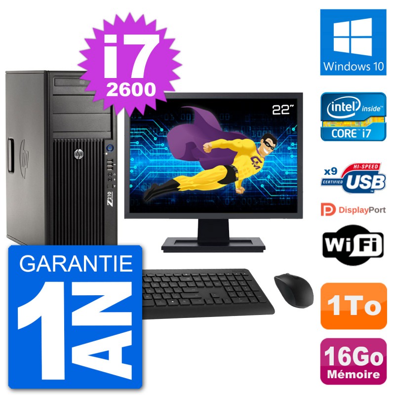 PC Tour HP Z210 Ecran 22" Intel i7-2600 RAM 16Go Disque Dur 1To Windows 10 Wifi