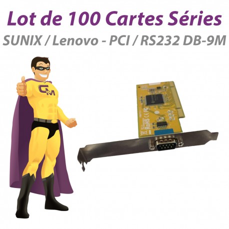 Lot de 100 Cartes Adaptateurs Séries - SUNIX / Lenovo - Modèle SER5027H - P/N 1PCB-SER5027AXX100 / FRU 03x4392 - PCI - 1 Port Série DB-9M / RS-232 - High Profile (équerre longue) - Garantie 6 mois.