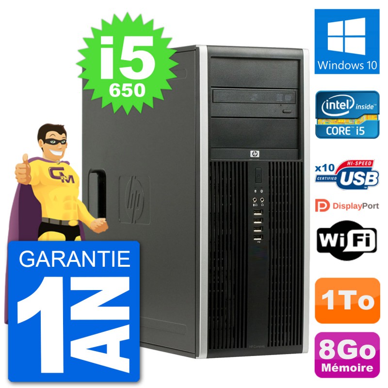 PC Tour HP 8100 Elite - Intel Core i5-650 3.2 Ghz (4 Mo) - 8 Go DDR3 - Disque Dur 3,5" 1 To - Graveur DVD - Clef Wifi USB - Windows 10 - Garantie 1 an.