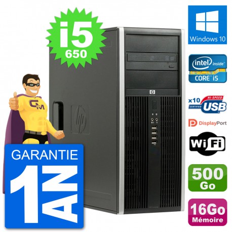 PC Tour HP 8100 Elite - Intel Core i5-650 3.2 Ghz (4 Mo) - 16 Go DDR3 - Disque Dur 3,5" 500 Go - Graveur DVD - Clef Wifi USB - Windows 10 - Garantie 1 an.
