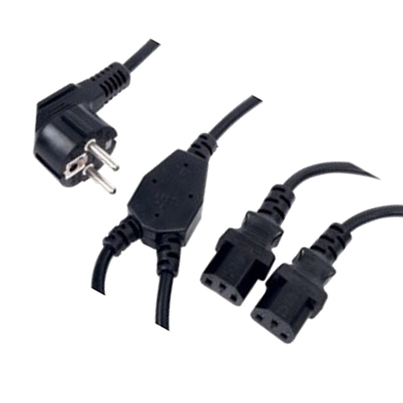 Double Câble Y d'Alimentation - 1x CEE 7/7 vers 2x IEC C13 - Adaptateur pour PC, Moniteur et Onduleur - Garantie 6 mois.