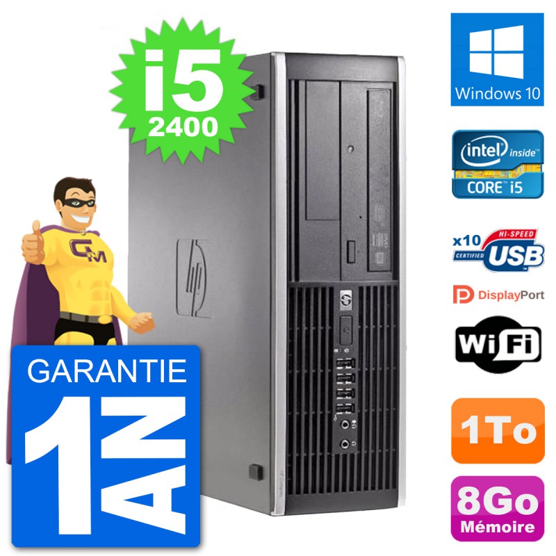 PC HP Compaq 6200 Pro SFF Intel i5-2400 RAM 8Go Disque Dur 1To Windows 10 Wifi
