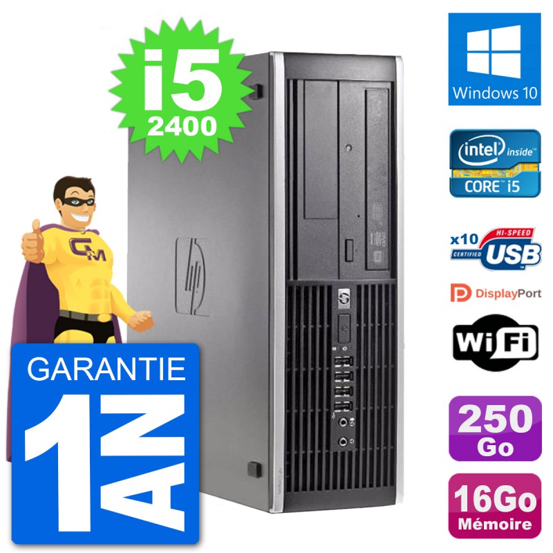 PC HP Compaq 6200 Pro SFF (Slim) - Intel Core i5-2400 3.1 Ghz (6 Mo) - 16 Go DDR3 - Disque Dur 3,5" 250 Go - Graveur DVD - Clef Wifi USB - Windows 10 - Garantie 1 an.