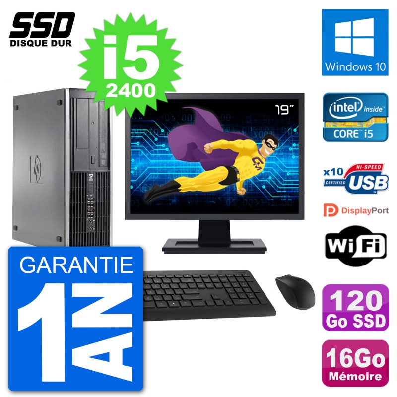 PC HP Compaq 6200 Pro SFF Ecran 19" i5-2400 RAM 16Go SSD 120Go Windows 10 Wifi