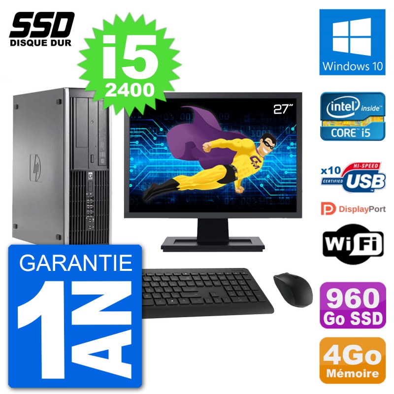 PC HP Compaq 6200 Pro SFF Ecran 27" i5-2400 RAM 4Go SSD 960Go Windows 10 Wifi
