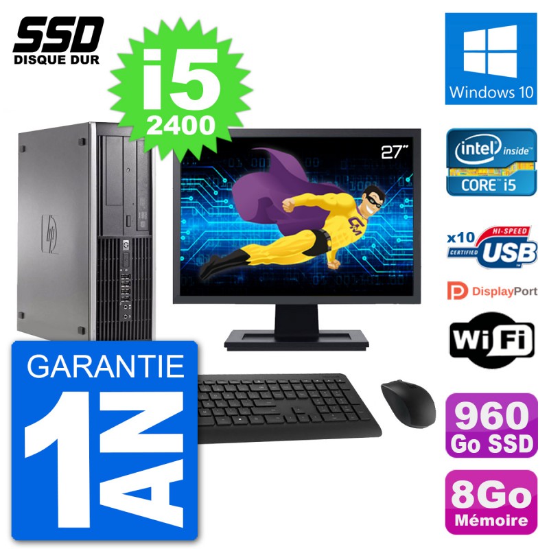PC HP Compaq 6200 Pro SFF Ecran 27" i5-2400 RAM 8Go SSD 960Go Windows 10 Wifi