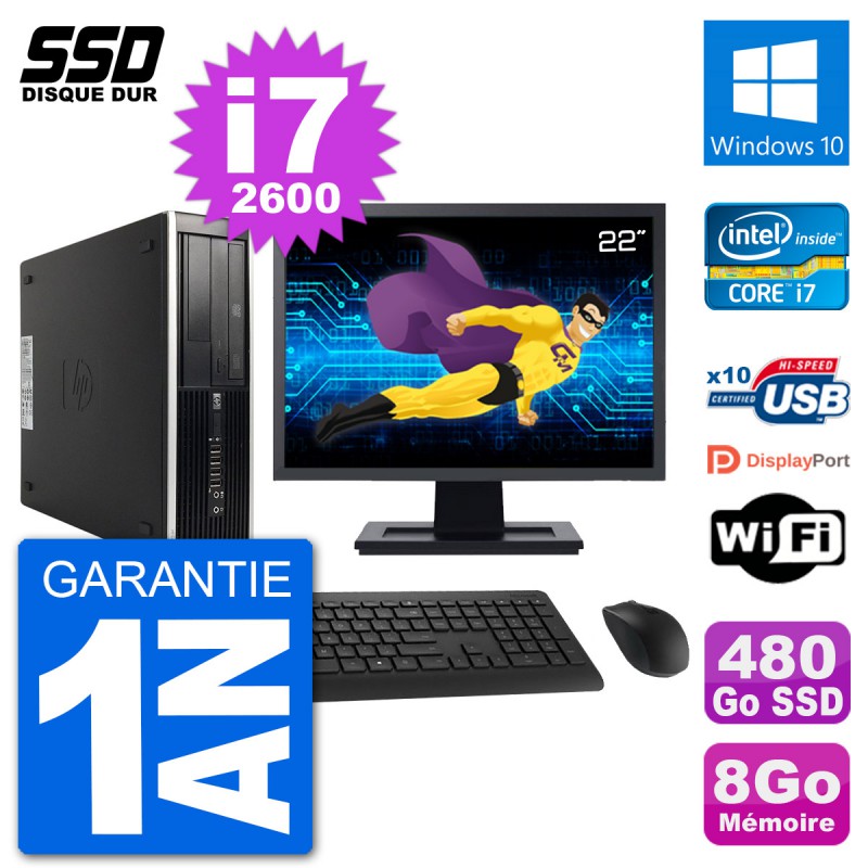 PC HP Compaq 6200 Pro SFF Ecran 22" i7-2600 RAM 8Go SSD 480Go Windows 10 Wifi