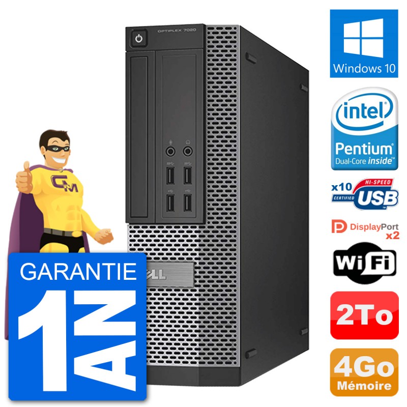 PC Dell OptiPlex 7020 SFF (Slim) - Intel Pentium Dual-Core G3220 3.0 Ghz (3 Mo) - 4 Go DDR3 - Disque Dur 3,5" 2 To - Graveur DVD - Clef Wifi USB - Windows 10 - Garantie 1 an.