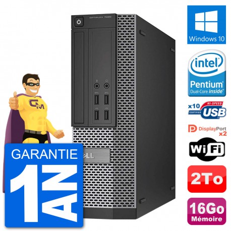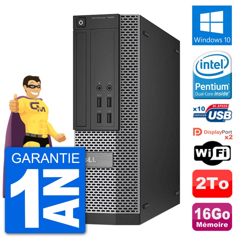 PC Dell OptiPlex 7020 SFF (Slim) - Intel Pentium Dual-Core G3220 3.0 Ghz (3 Mo) - 16 Go DDR3 - Disque Dur 3,5" 2 To - Graveur DVD - Clef Wifi USB - Windows 10 - Garantie 1 an.
