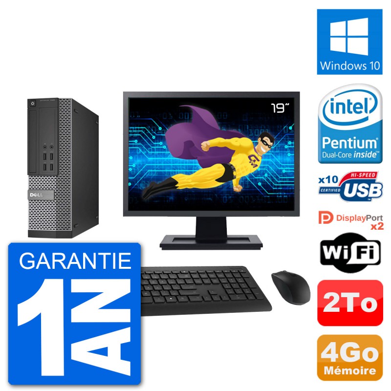 PC Dell 7020 SFF (Slim) - Intel Pentium Dual-Core G3220 3.0 Ghz (3 Mo) - 4 Go DDR3 - Disque Dur 3,5" 2 To - Graveur DVD - Clef Wifi USB - Windows 10 - Livré avec Ecran 19" + clavier + souris (Marques et modèles variables) - Garantie 1 an.