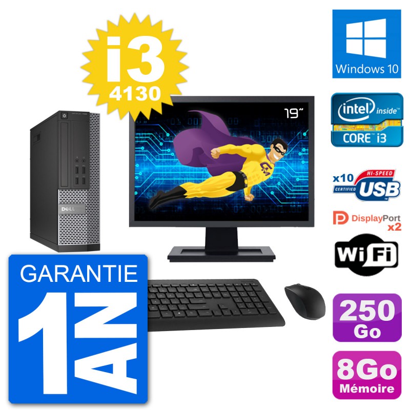 PC Dell 7020 SFF Ecran 19" Intel i3-4130 RAM 8Go Disque 250Go Windows 10 Wifi
