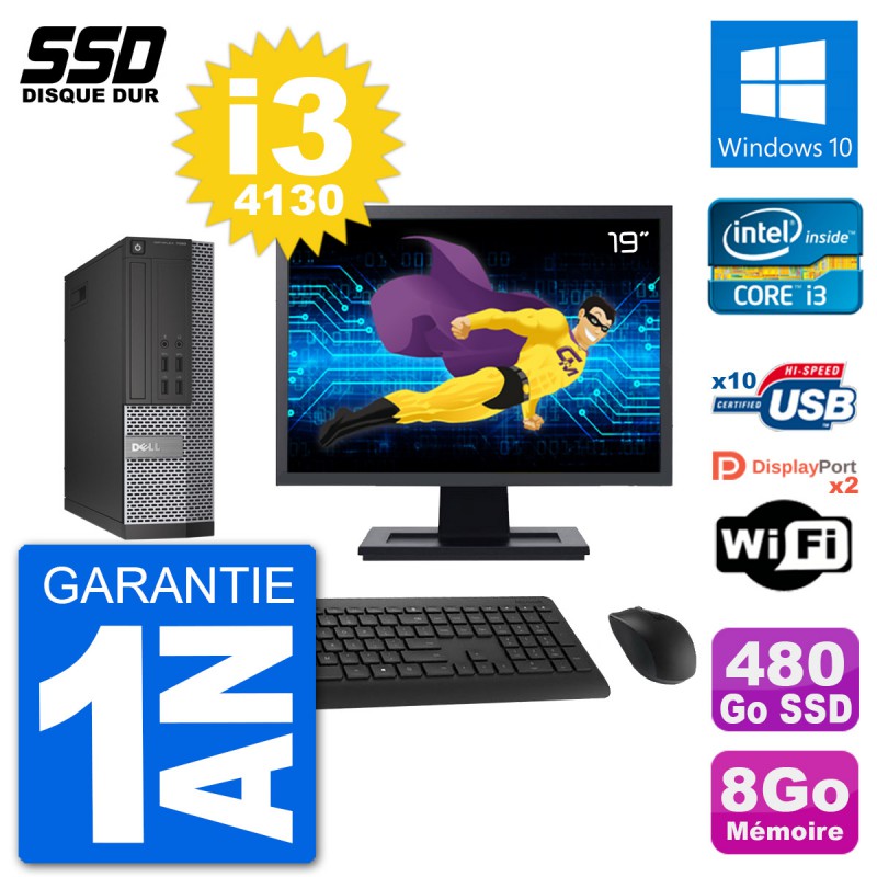 PC Dell 7020 SFF (Slim) - Intel Core i3-4130 3.4 Ghz (3 Mo) - 8 Go DDR3 - Disque Dur SSD 480 Go - Graveur DVD - Clef Wifi USB - Windows 10 - Livré avec Ecran 19" + clavier + souris (Marques et modèles variables) - Garantie 1 an.