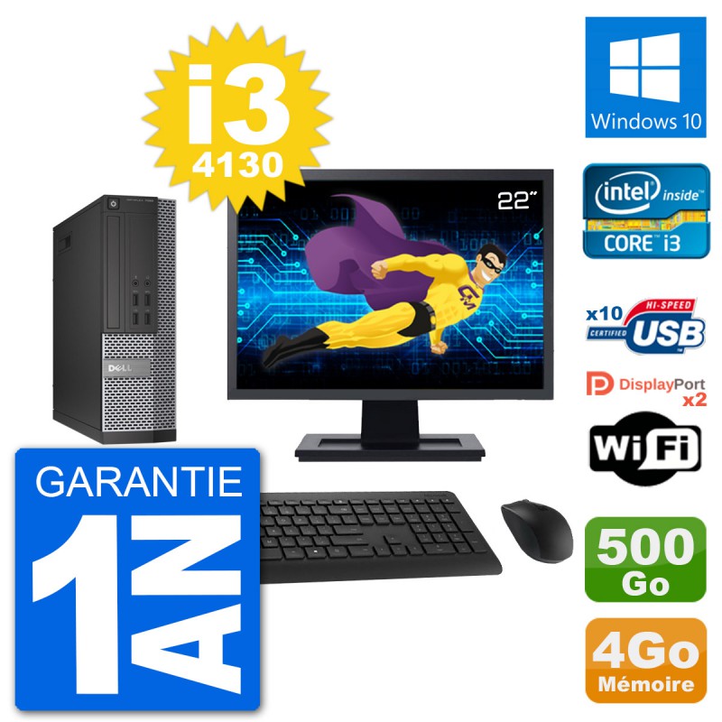 PC Dell 7020 SFF Ecran 22" Intel i3-4130 RAM 4Go Disque 500Go Windows 10 Wifi