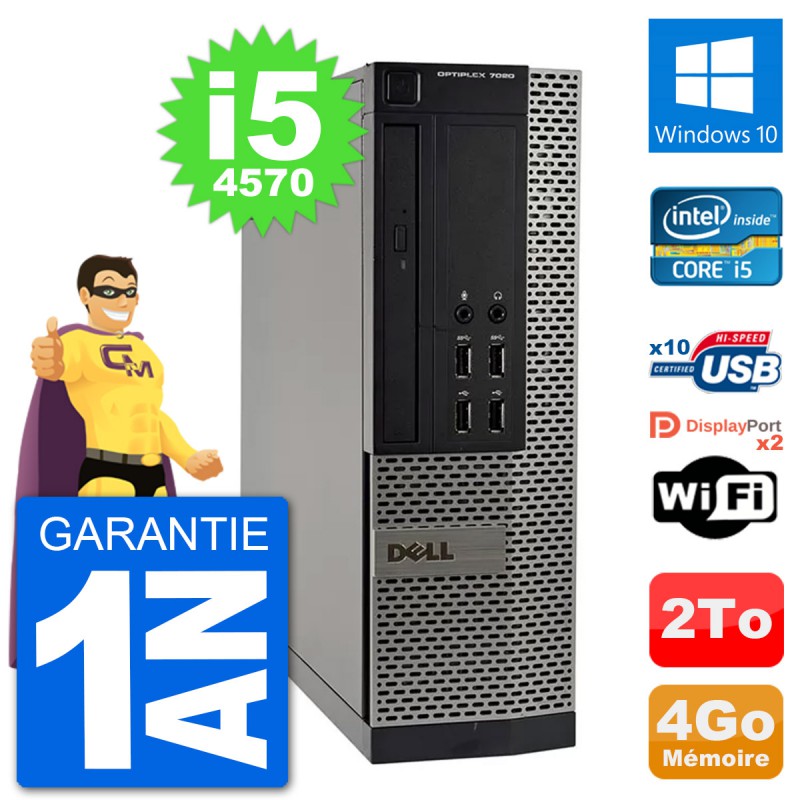 PC Dell OptiPlex 7020 SFF Intel i5-4570 RAM 4Go Disque Dur 2To Windows 10 Wifi