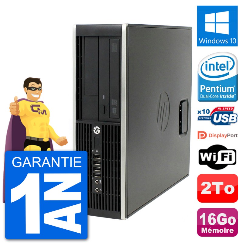 PC HP Compaq Pro 6300 SFF (Slim) - Intel Pentium Dual-Core G630 2.7 Ghz (3 Mo) - 16 Go DDR3 - Disque Dur 3,5" 2 To - Graveur DVD - Clef Wifi USB - Windows 10 - Garantie 1 an.