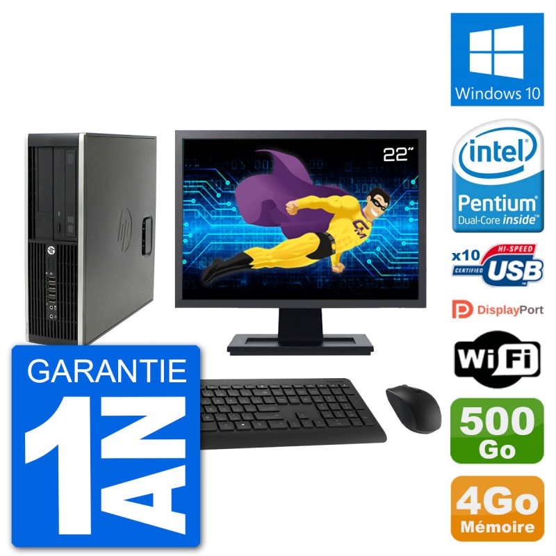 PC HP Compaq Pro 6300 SFF (Slim) - Intel Pentium Dual-Core G630 2.7 Ghz (3 Mo) - 4 Go DDR3 - Disque Dur 3,5" 500 Go - Graveur DVD - Clef Wifi USB - Windows 10 - Livré avec Ecran 22" + clavier + souris (Marques et modèles variables) - Garantie 1 an.