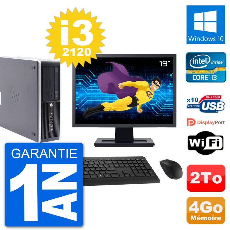 PC HP Compaq Pro 6300 SFF Ecran 19" i3-2120 RAM 4Go Disque 2To Windows 10 Wifi