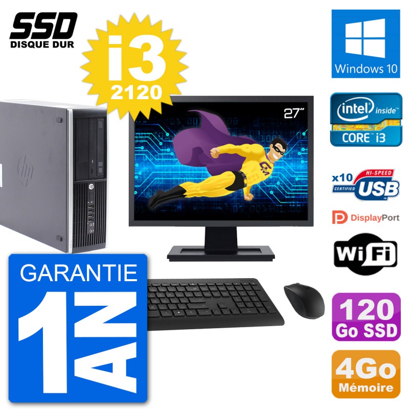 PC HP Compaq Pro 6300 SFF Ecran 27" i3-2120 RAM 4Go SSD 120Go Windows 10 Wifi