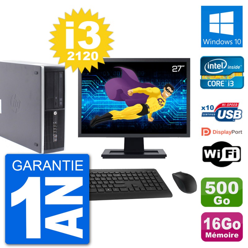 PC HP Compaq Pro 6300 SFF Ecran 27" Intel i3-2120 RAM 16Go 500Go Windows 10 Wifi