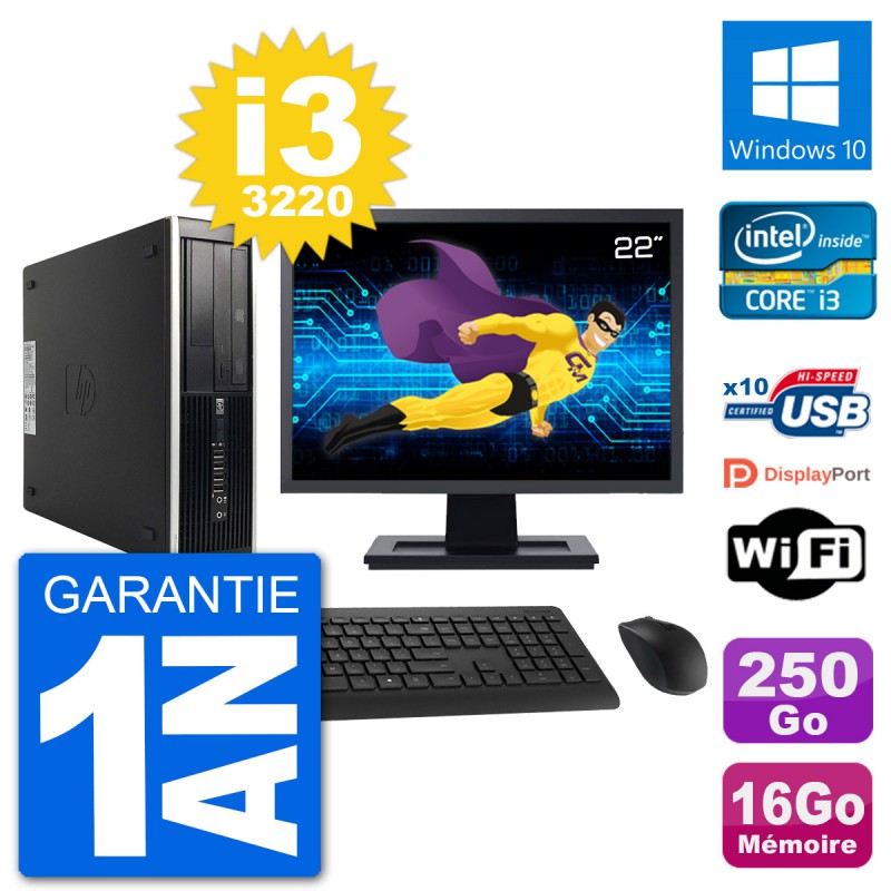 PC HP Compaq Pro 6300 SFF Ecran 22" Intel i3-3220 RAM 16Go 250Go Windows 10 Wifi