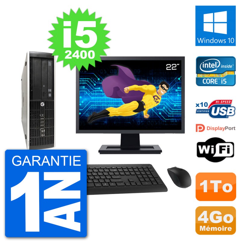 PC HP Compaq Pro 6300 SFF Ecran 22" i5-2400 RAM 4Go Disque 1To Windows 10 Wifi