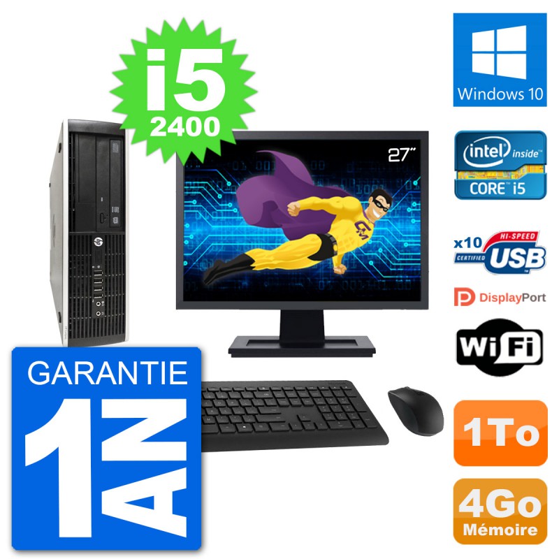 PC HP Compaq Pro 6300 SFF Ecran 27" i5-2400 RAM 4Go Disque 1To Windows 10 Wifi