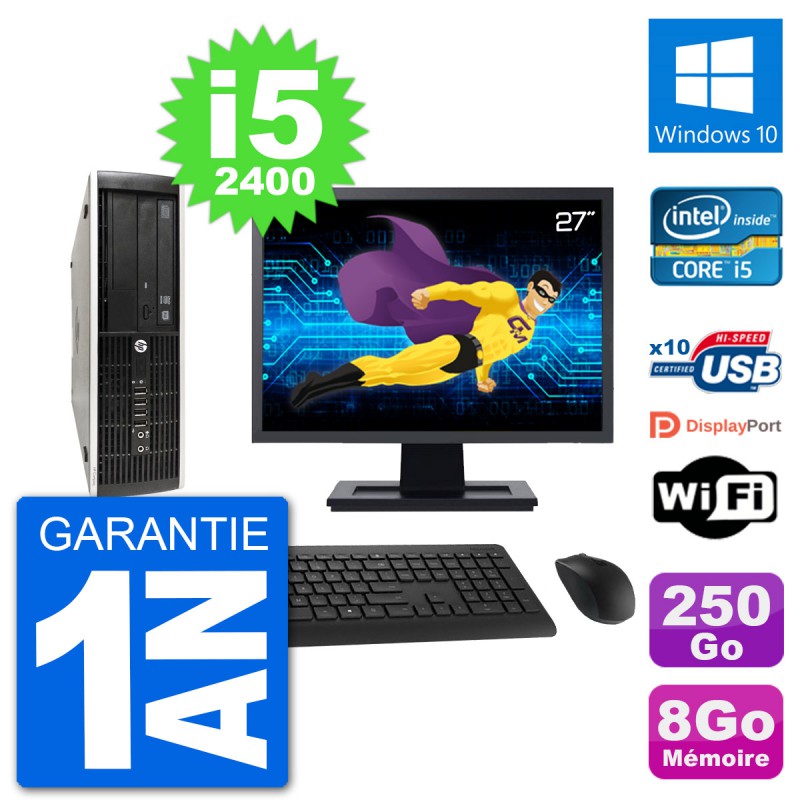 PC HP Compaq Pro 6300 SFF Ecran 27" i5-2400 RAM 8Go Disque 250Go Windows 10 Wifi