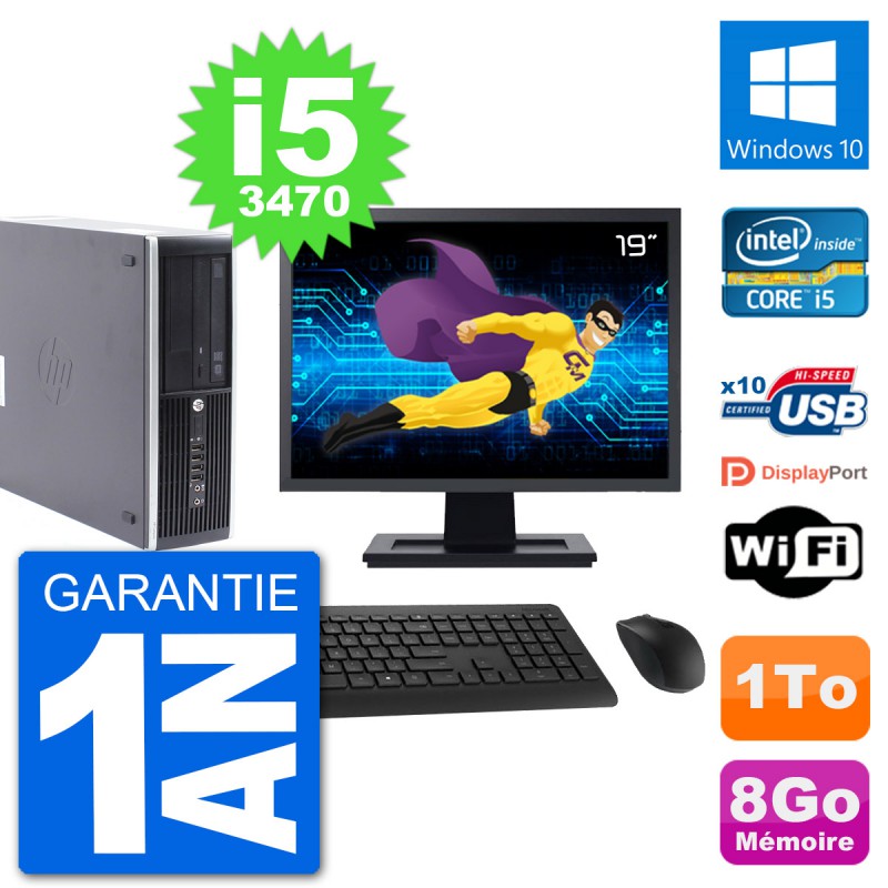 PC HP Compaq Pro 6300 SFF Ecran 19" i5-3470 RAM 8Go Disque 1To Windows 10 Wifi