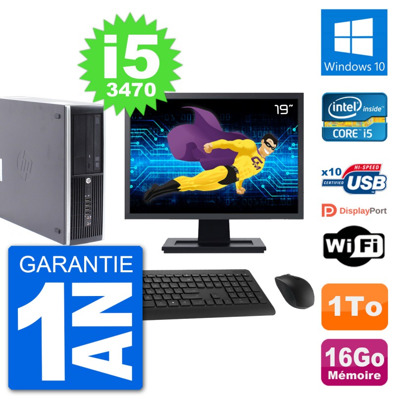 PC HP Compaq Pro 6300 SFF Ecran 19" i5-3470 RAM 16Go Disque 1To Windows 10 Wifi