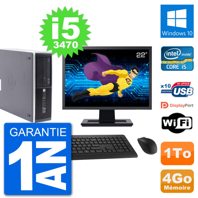 PC HP Compaq Pro 6300 SFF Ecran 22" i5-3470 RAM 4Go Disque 1To Windows 10 Wifi