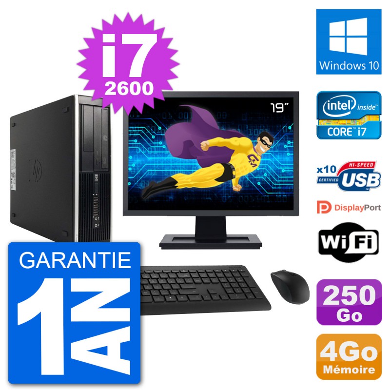 PC HP Compaq Pro 6300 SFF (Slim) - Intel Core i7-2600 3.4 Ghz (8 Mo) - 4 Go DDR3 - Disque Dur 3,5" 250 Go - Graveur DVD - Clef Wifi USB - Windows 10 - Livré avec Ecran 19" + clavier + souris (Marques et modèles variables) - Garantie 1 an.