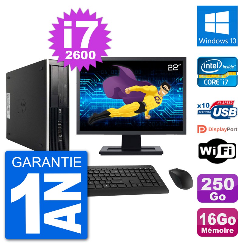 PC HP Compaq Pro 6300 SFF Ecran 22" Intel i7-2600 RAM 16Go 250Go Windows 10 Wifi