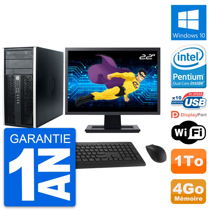 PC HP Pro 6300 CMT (Micro Tour) - Intel Pentium Dual-Core G630 2.7 Ghz (3 Mo) - 4 Go DDR3 - Disque Dur 3,5" 1 To - Graveur DVD - Clef Wifi USB - Windows 10 - Livré avec Ecran 22" + clavier + souris (Marques et modèles variables) - Garantie 1 an.